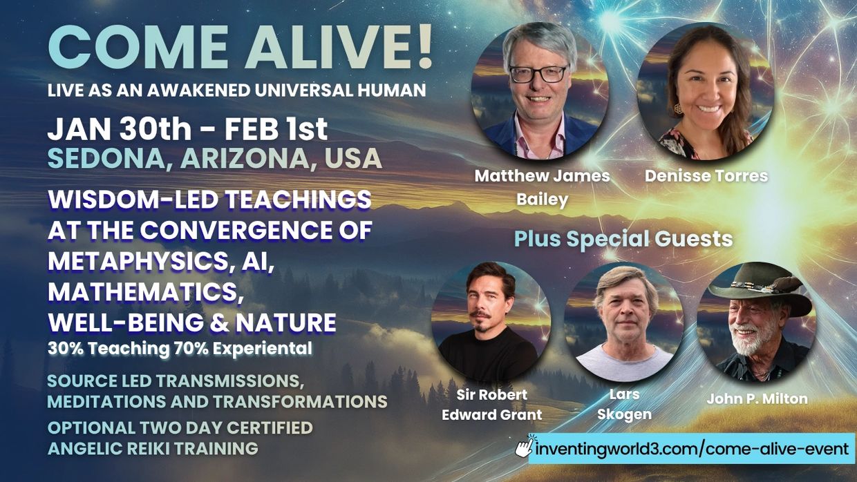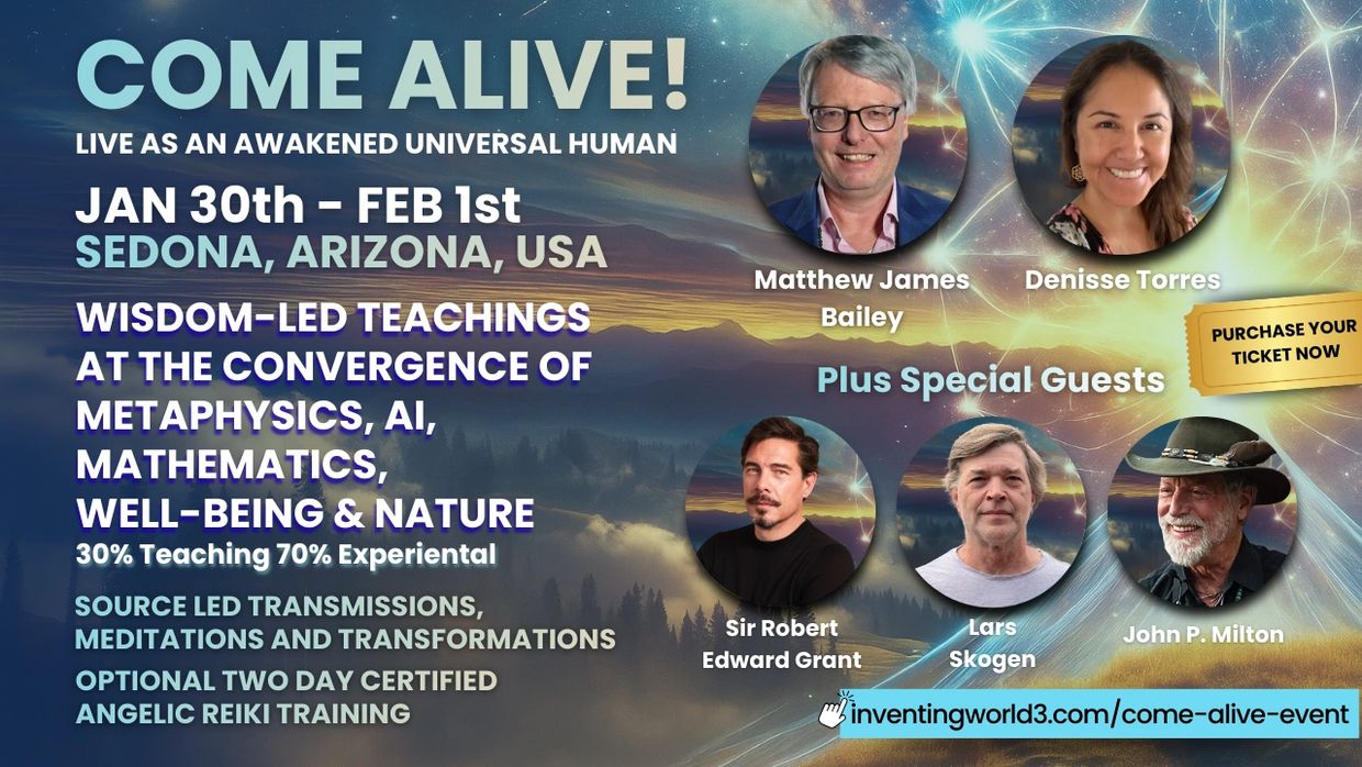 'This event delivers wisdom-led teachings at the convergence of the three great forces shaping our future — Metaphysics, Artificial Intelligence, and Nature — activating your unique and fully integrated Universal Human experience.'
